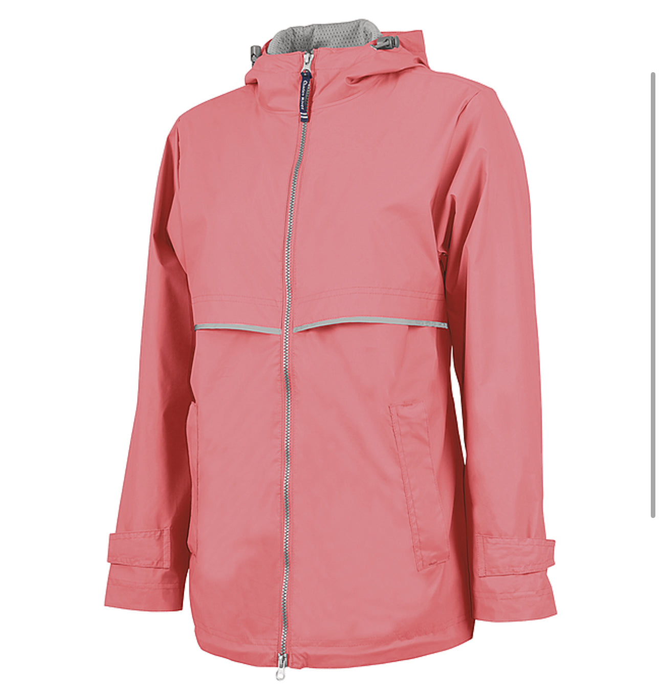 Women’s Full zip rain jacket in a ton of color options. Wind and water proof and has pockets. Price includes a chest monogram. Check out through shop pay if you would like to choose local pickup.